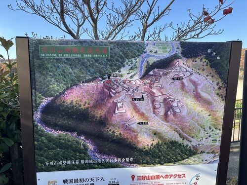 12月8日 芥川山城から阿武山へAⅡハイキングを行いました。 参加は18名 集合:8:50 JR高槻駅改札口前 9:05 高槻市営バス塚脇行乗車。 9:20 塚脇バス停着。三好長慶の説明版が多数あり、ミーティング開始 芥川山城(三好山)へ向かう。 民家の間を抜ける…