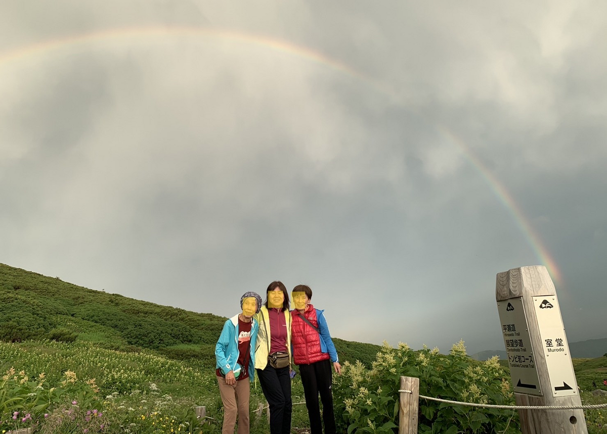 夕食後、室堂平を散策。きれいな虹が上がっていました。輪の中の写真、何か良い事がありそうですね。