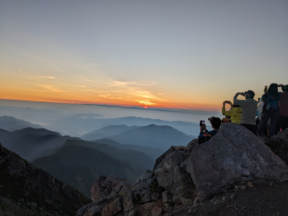 この時、神職さんによる音頭で登山者も万歳三唱を唱えます。この時ばかりは日ノ出の神々しさを感じる瞬間です。