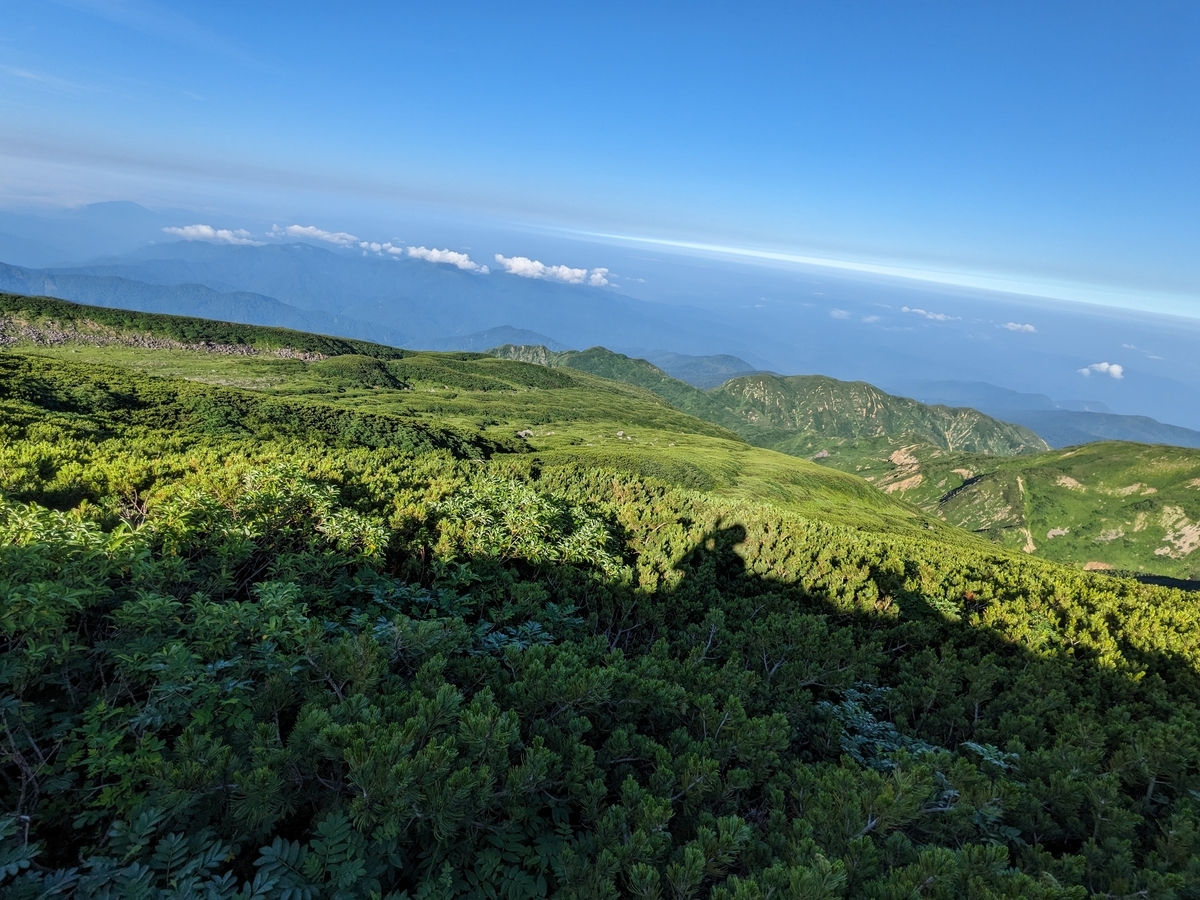 前方には御前峰へと続く大きな尾根が伸びています。素晴らしい展望です。