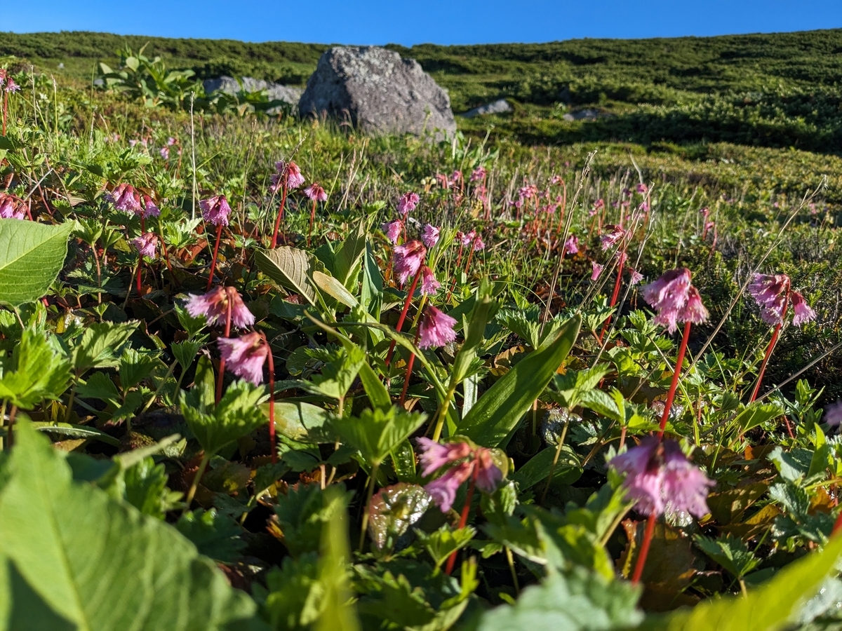イワカガミやイワギキョウなどが途切れることなく咲いています。