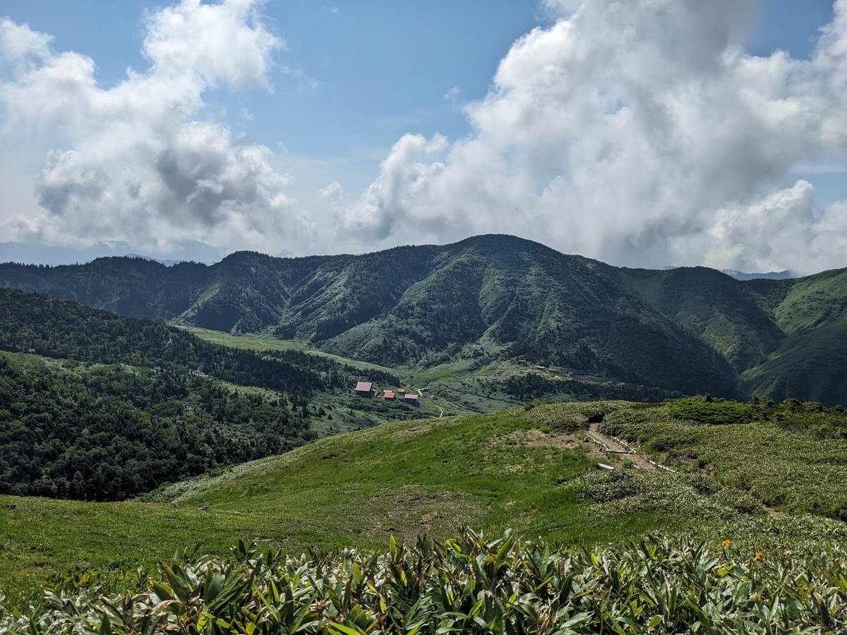 眼下には南竜ケ馬場の野営場が見えてきました。