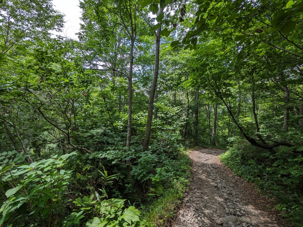 最初は気持ちの良い別当坂を歩きます。30分程登ると広場になった登山口に出ました。ここから本格的な登りとなります、一息入れます。
