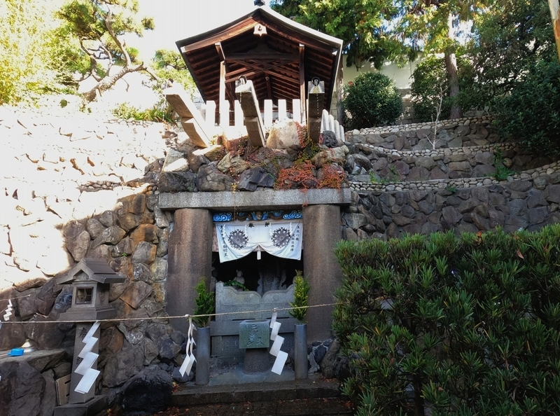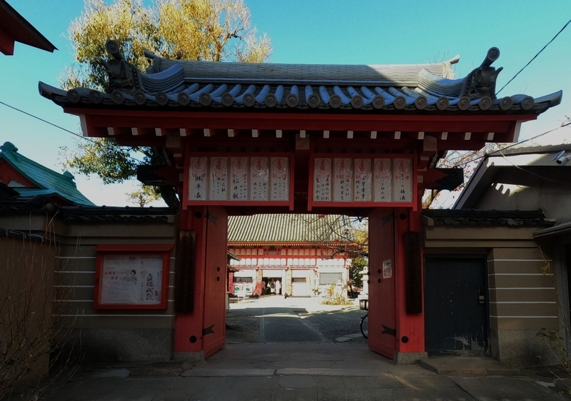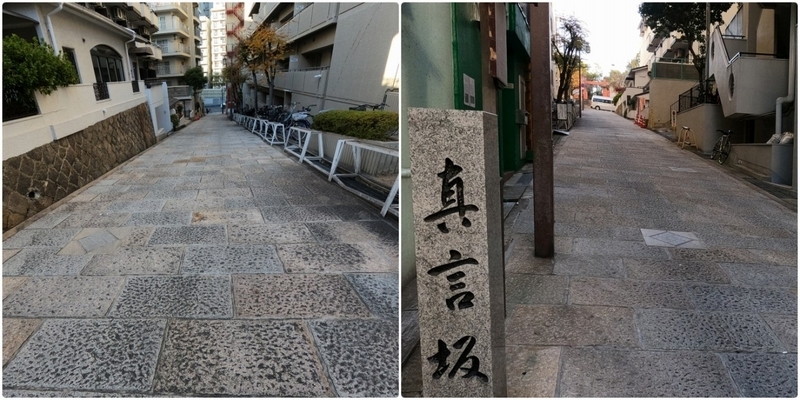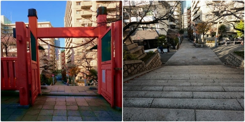 真言坂は赤鳥居をくぐり急な階段を下った先からです