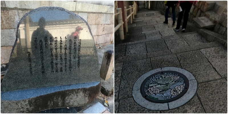織田作之助の文学碑とカラフルなマンホール