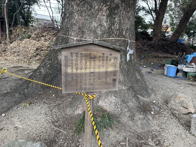 「おじいさんの木 第6号」が裏にありました。NPO大阪緑と樹木の診断協会」の木札があり、クスノキです。